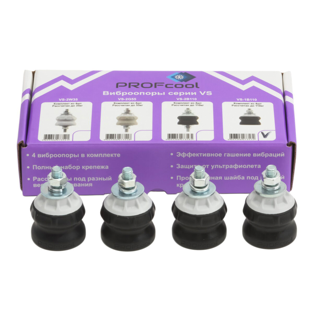 Виброопоры PROFcool серии VS предназначены для эффективного гашения вибраций в ходе работы различного климатического и промышленного оборудования, рассчитанные под разный вес техники. Максимальная нагрузка: до 110 кг. В комплекте 4 шт.