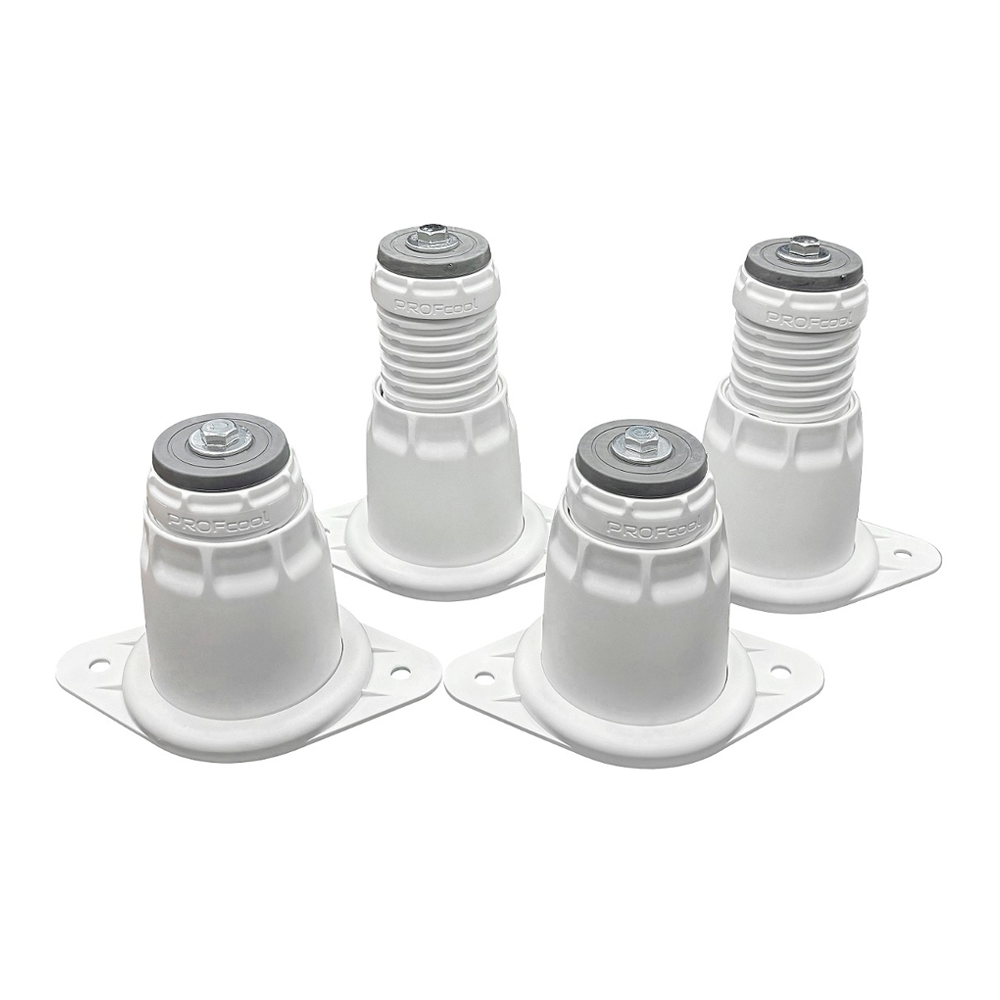Подставки уменьшают вибрацию и шум от установленного на них оборудования, за счет колец между подставками и основанием, а так же демпферов сверху опор.