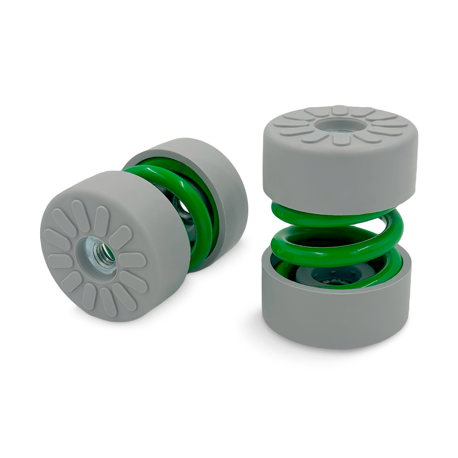 Виброопоры с пружинным демпфером изготовлены из высококачественного эластомера, имеющего высокую степень на разрыв. Они устойчивы к атмосферным воздействиям, к действию углеводородов, жиров органического происхождения, моющим и чистящим средствам, как на кислотной, так и на щелочной основе, а также спиртам, химическим основаниям и ультрафиолетовому излучению.