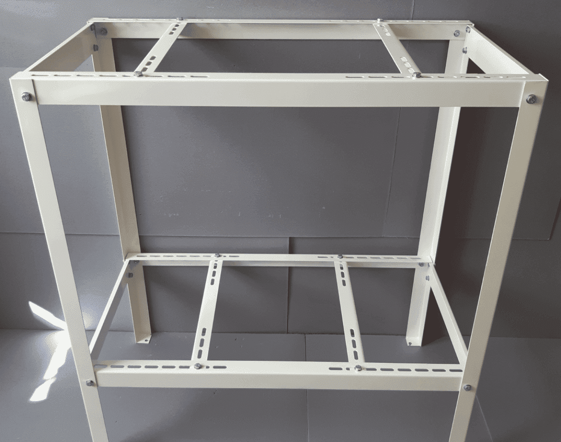 Разборная универсальная двухъярусная подставка используется для монтажа двух внешних блоков сплит-систем. Приспособление подходит к применению с широким спектром моделей кондиционеров, благодаря своей конструкции с регулируемыми планками, которые можно установить под необходимые размеры внешнего блока. Подставка обеспечивает надежное крепление, а также минимизирует возможные вибрации. Подставка покрыта порошковой краской белого цвета, благодаря которой не подвергается химическим и механическим воздействиям. Несмотря на неблагоприятные погодные условия, сохраняет привлекательный внешний вид и надежность конструкции.