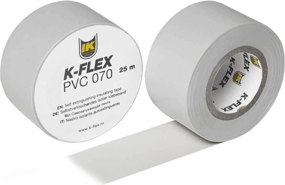 Самоклеящаяся лента из ПВХ и каучука K-Flex K-FLEX 050-025 PVC AT 070 gray с шириной 50 мм для герметизации швов теплоизоляции и защитных систем. Рабочая температура от -40 до +125°C. Длина 25 метров.