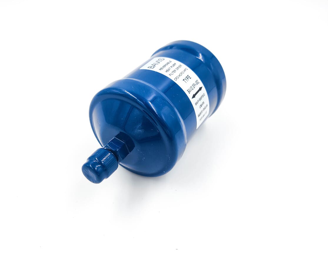Фильтр-осушитель BAVIS SFK-165 на жидкостную линию для очистки холодильных контуров от загрязнений: воды, кислоты и твердых частиц. Использует мелкие сферические частицы высокопрочного спеченного десикантного ядра и фильтрующую сетку высокой плотности, что обеспечивает работу без ударов и трения и снижает износ осушителя.