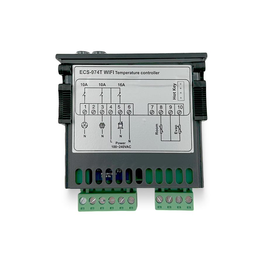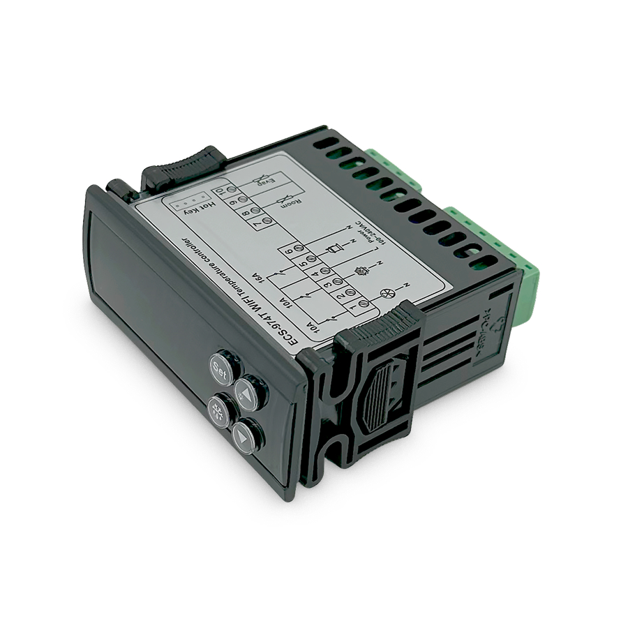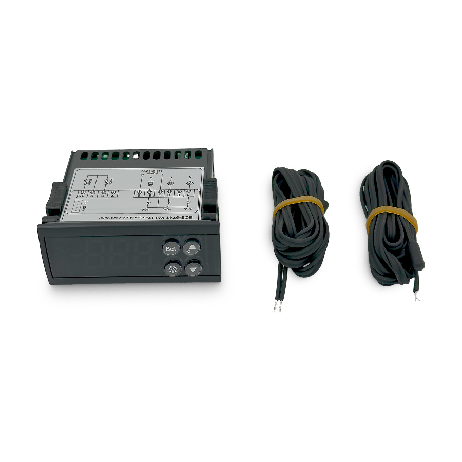 Контроллер ECS-974T Wi-Fi — умный контроллер температуры с поддержкой приложения Smart Life для удалённого управления через смартфон. Подходит для холодильных и морозильных камер, оснащён функциями охлаждения, разморозки, управления вентилятором и сигнализации. Этот цифровой терморегулятор с двумя NTC датчиками обеспечивает точный контроль температуры и стабильную работу холодильного оборудования. Устройство работает как электронный терморегулятор для управления вентиляцией и температурными циклами, подходит для использования в камерах хранения, витринах, холодильных установках.