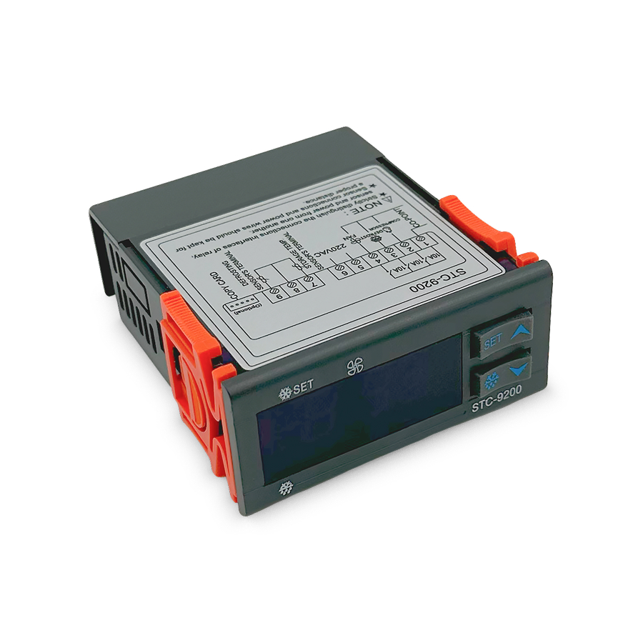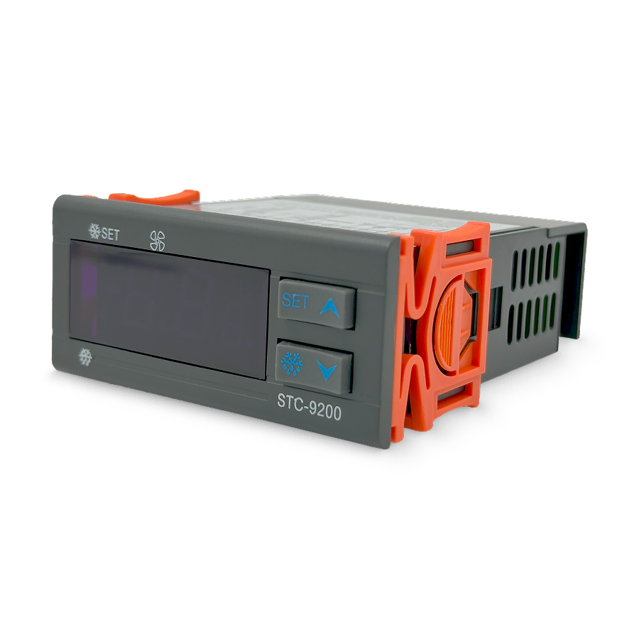 Универсальный контроллер BAVIS STC-9200 для управления температурой средне- и низкотемпературных холодильных систем. Поставляется с тремя выходными реле для управления компрессором, оттайкой – которая может производиться как электронагревателями, так и горячим хладагентом – и вентиляторами воздухоохладителей. Контроллер комплектуется двумя входными датчиками (NTC): один для контроля температуры в камере, другой расположен в воздухоохладителе для контроля температуры прекращения оттайки. Каждый прибор полностью настраивается с помощью специальных параметров, которые могут быть легко запрограммированы с помощью кнопок.