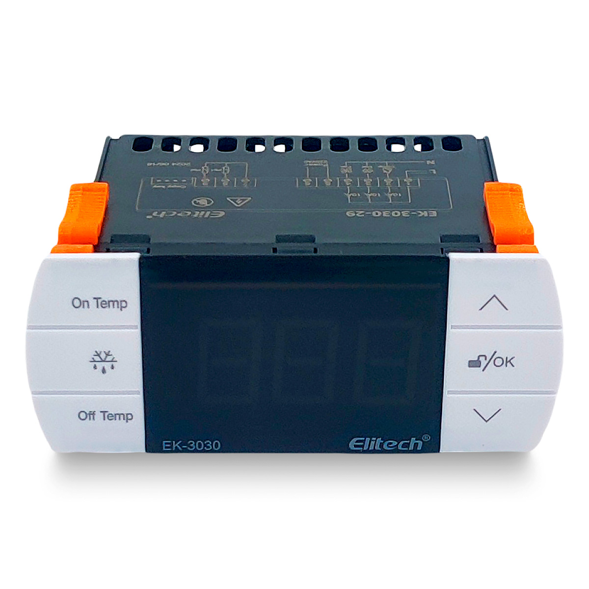 Универсальный цифровой контроллер EK-3030 предназначен для для контроля температуры вентилируемых холодильных установок или отопительного оборудования при высоких температурах. Три выходных реле для управления процессором, вентилятором и оттайкой. 6 сенсорных клавиш, быстрая настройка с множеством функций.