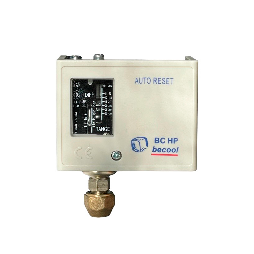Реле давления Becool BC HP серии ВС предназначено для использования в холодильных установках и системах кондиционирования воздуха, тепловых насосах, чиллерах с целью защиты системы от чрезмерно высокого давления нагнетания. Также реле высокого давления Becool BC HP используется для поддержания давления конденсации методом пуск/остановка вентилятора.