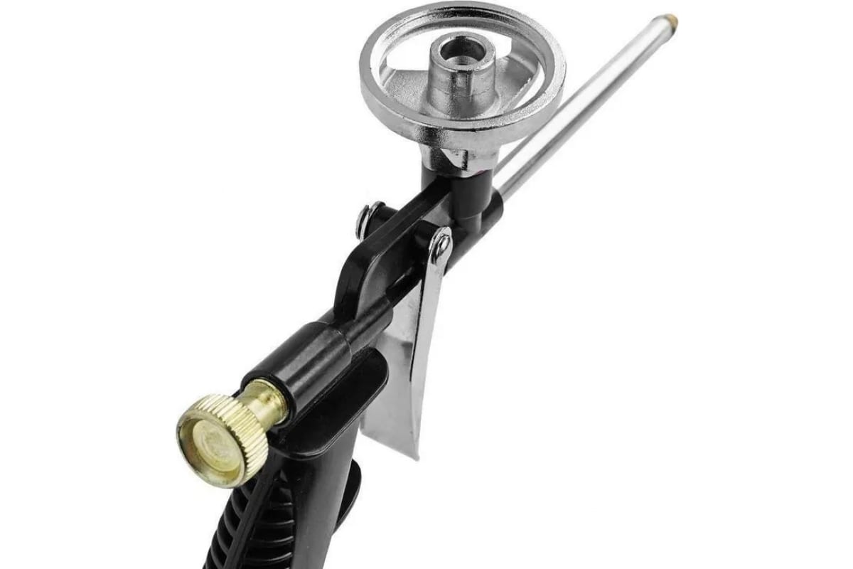 - Адаптер – цельнометаллический с клапаном подачи пены, съемный. Расположен с тыльной стороны корпуса пистолета.