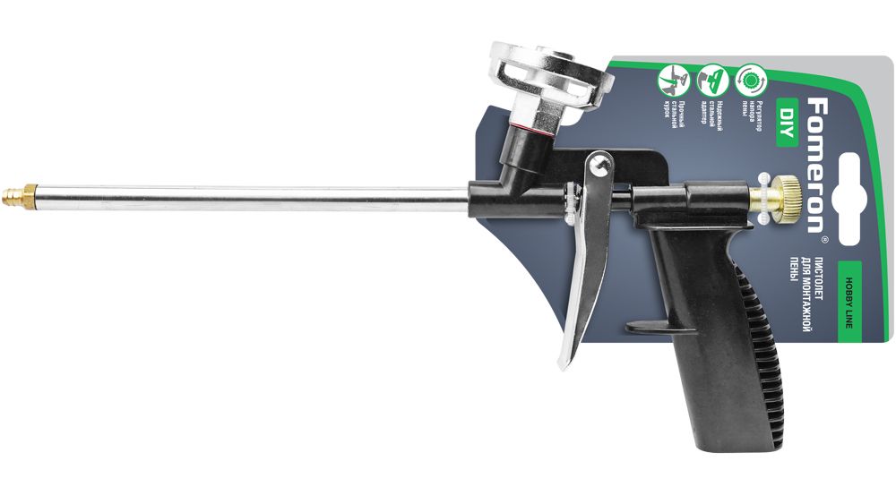Пистолет для монтажной пены Fomeron DIY - это простой и удобный в обращении инструмент, который используется для заполнения пустот, щелей и отверстий при монтаже дверей, окон и т.д. Он имеет облегченную конструкцию и оснащен винтом регулировки напора, благодаря чему пена наносится аккуратно и точно.