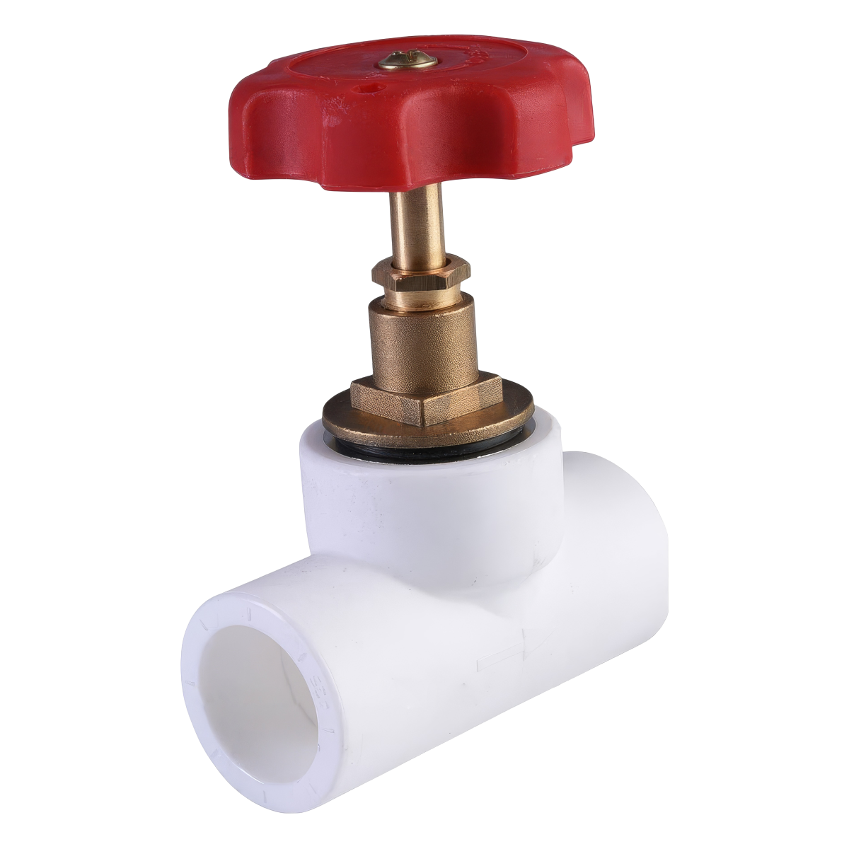 Полипропиленовый вентиль - корпусной фитинг с механизмом регулирования шпиндельного типа расположенного под углом 90 градусов к направлению потока, позволяет плавно регулировать его в системе. Вращение маховика против часовой стрелки открывает вентиль, а по часовой закрывает.