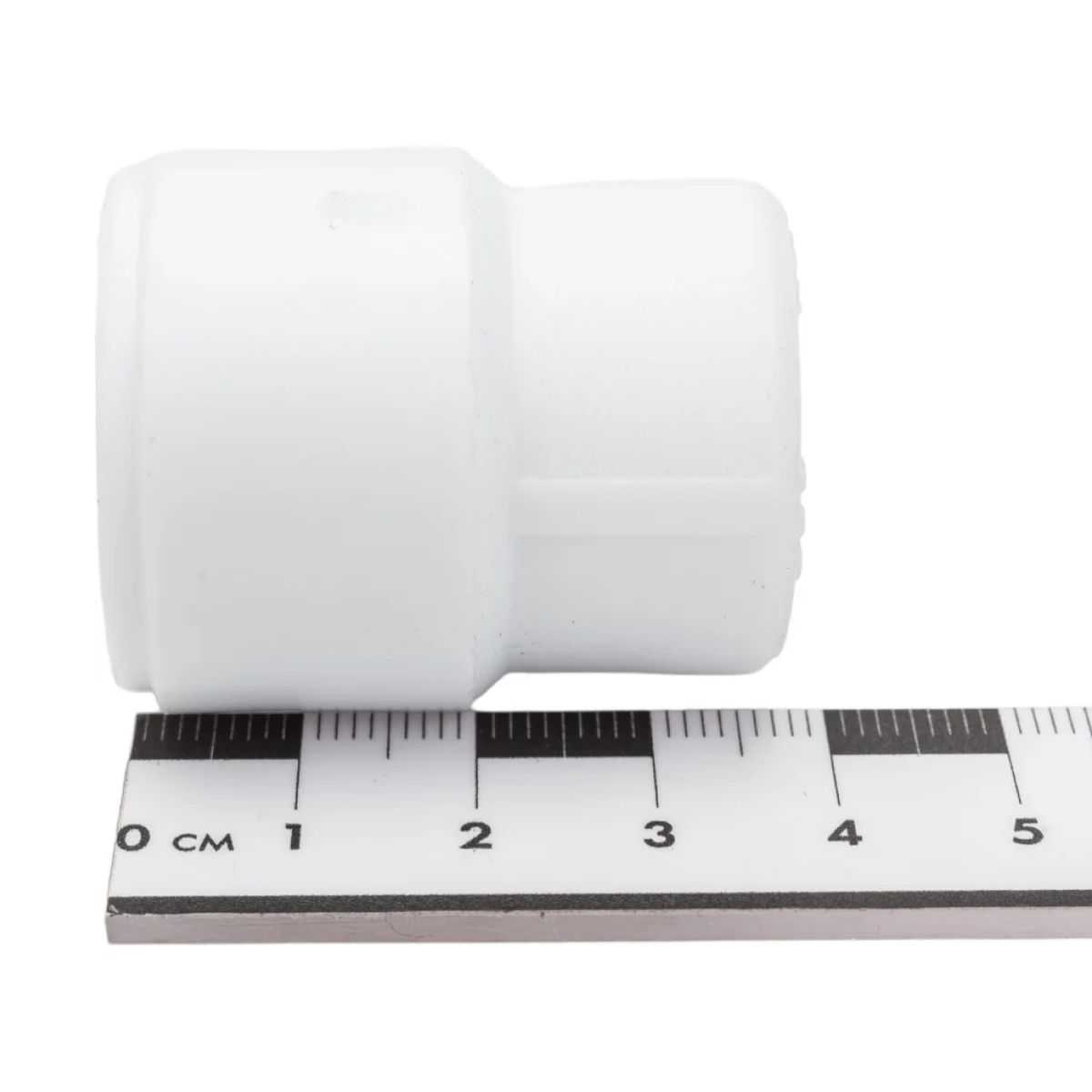 Полипропиленовый фитинг. Предназначен для соединения двух полипропиленовых труб разного диаметра. Производится методом литья под давлением.