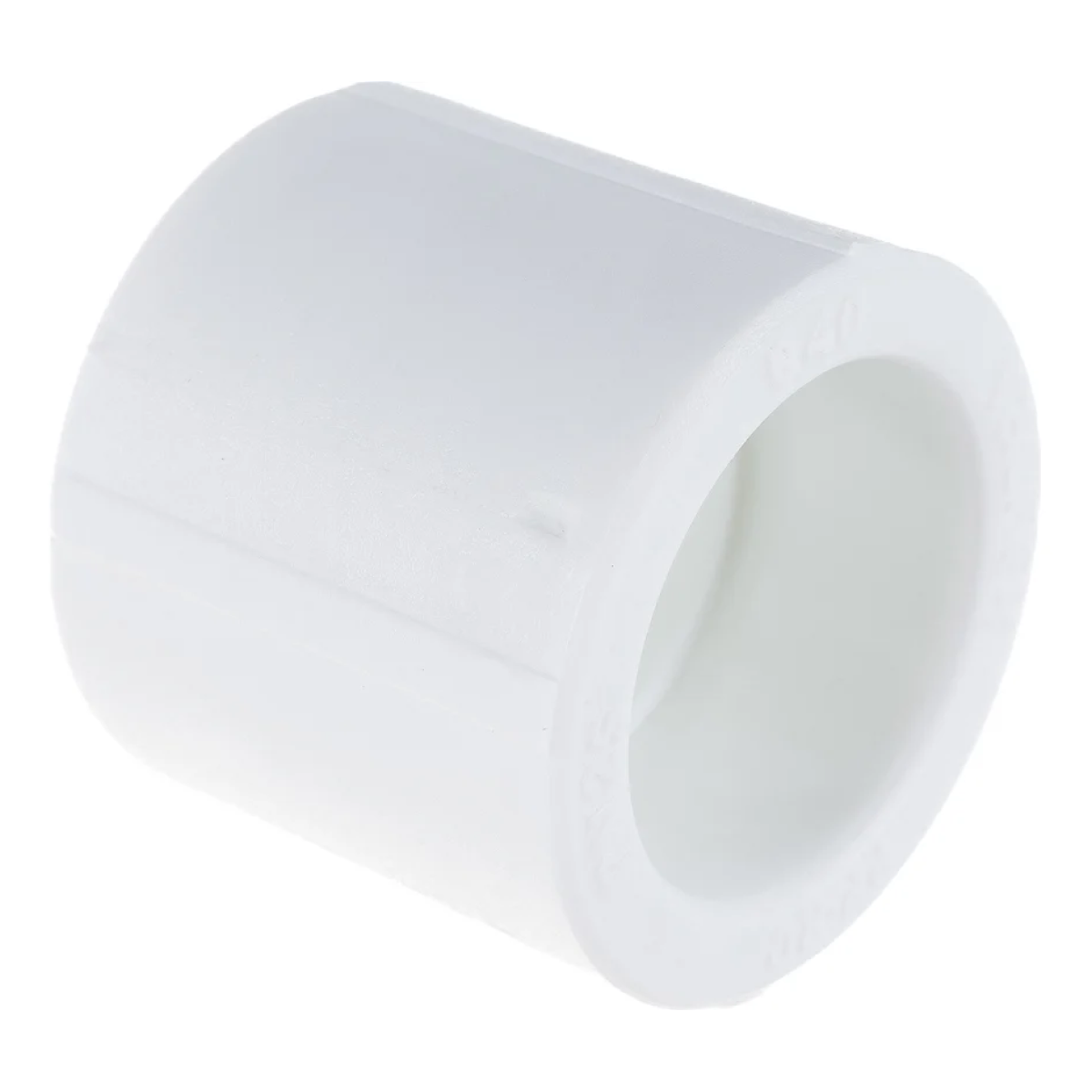 Полипропиленовый фитинг. Используется для соединения между собой двух труб одинакового диаметра. Производится методом литья под давлением.