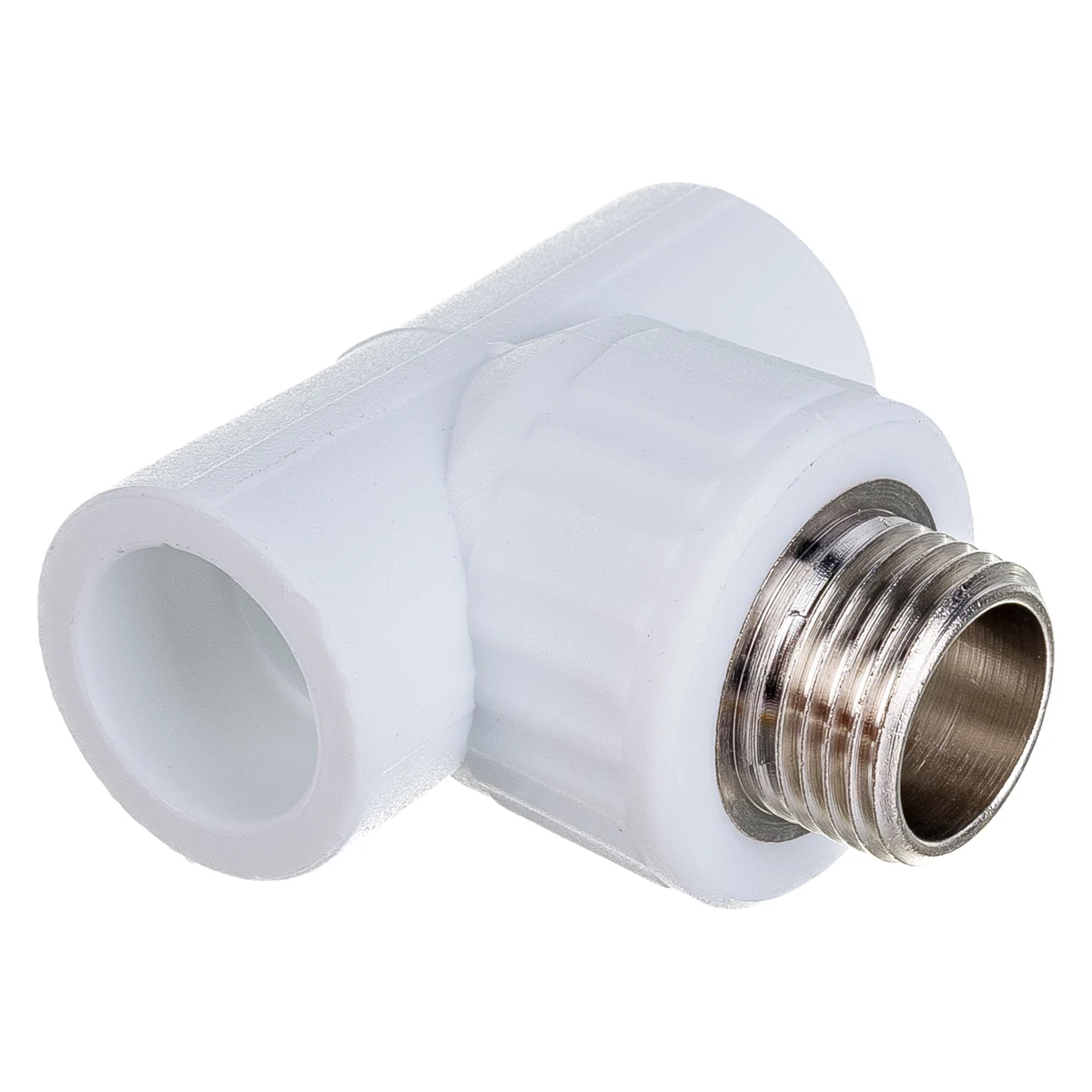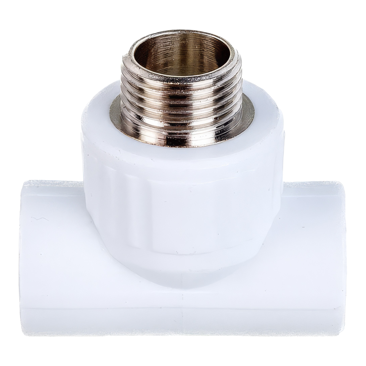 Комбинированный полипропиленовый фитинг, закладная деталь изготовлена из латуни марки ЛС-59-2. Обеспечивает боковой переход с основной магистрали на дюймовую резьбу в системах водоснабжения и отопления. Латунные части производятся методом горячего штампования, пластиковые - методом литья под давлением.