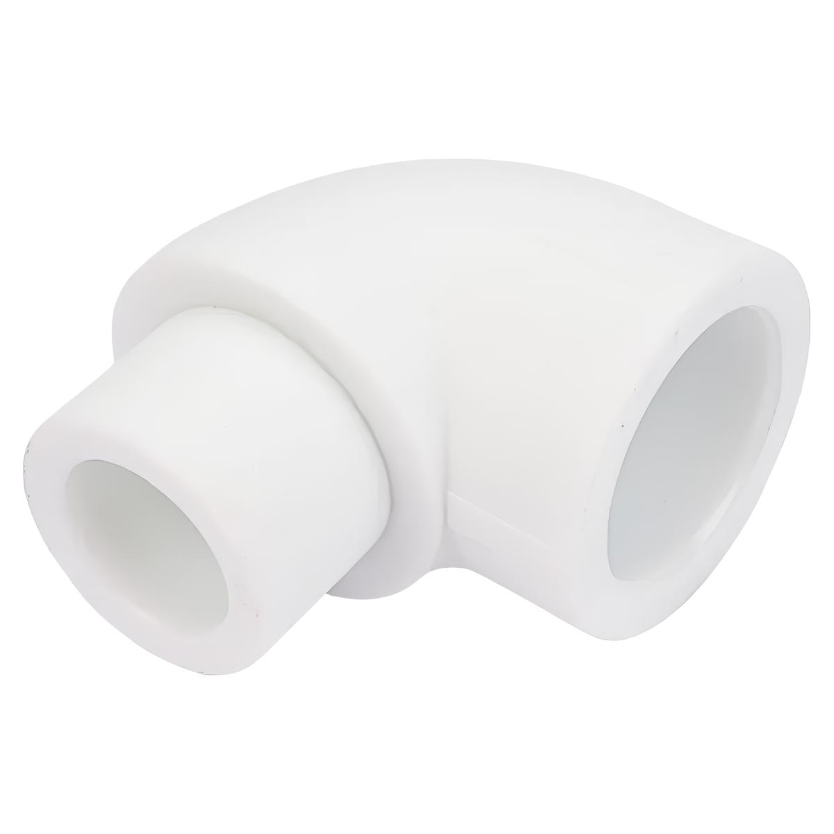 Полипропиленовый фитинг. Используется для поворота трубопровода на 90°. Производится методом литья под давлением.