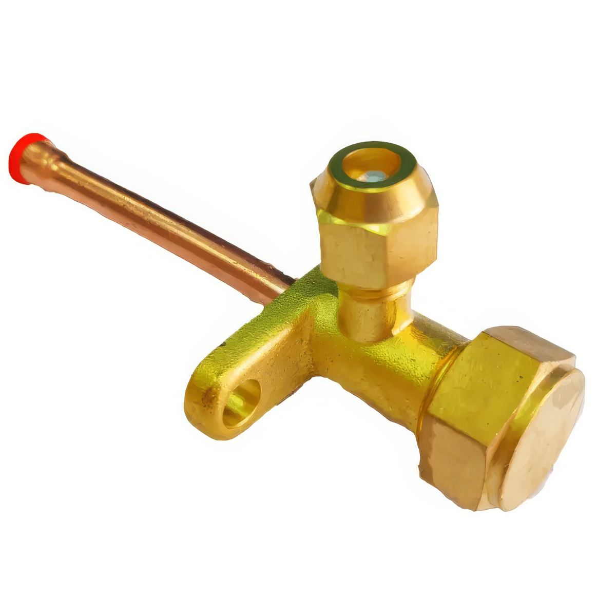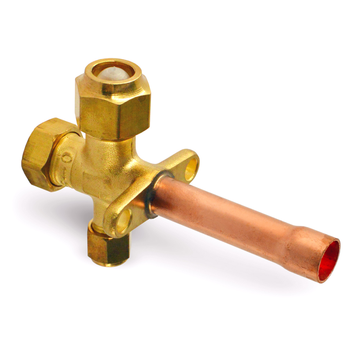 Сервисный клапан кондиционера 1/4" расположен на внешнем блоке, он является узлом соединения внутреннего и наружного блока между собой посредством фреонопровода. 3-х ходовой клапан необходим для выполнения сервисных операций, связанных с заполнением контура хладагентом либо откачкой из контура хладагента или воздуха.