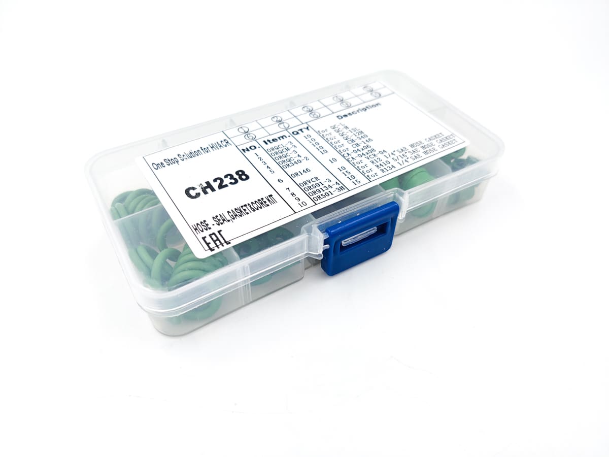 Ремкоплект Favor Cool CH-238 содержит набор прокладок и уплотнителей для заправочных шлангов и муфт.