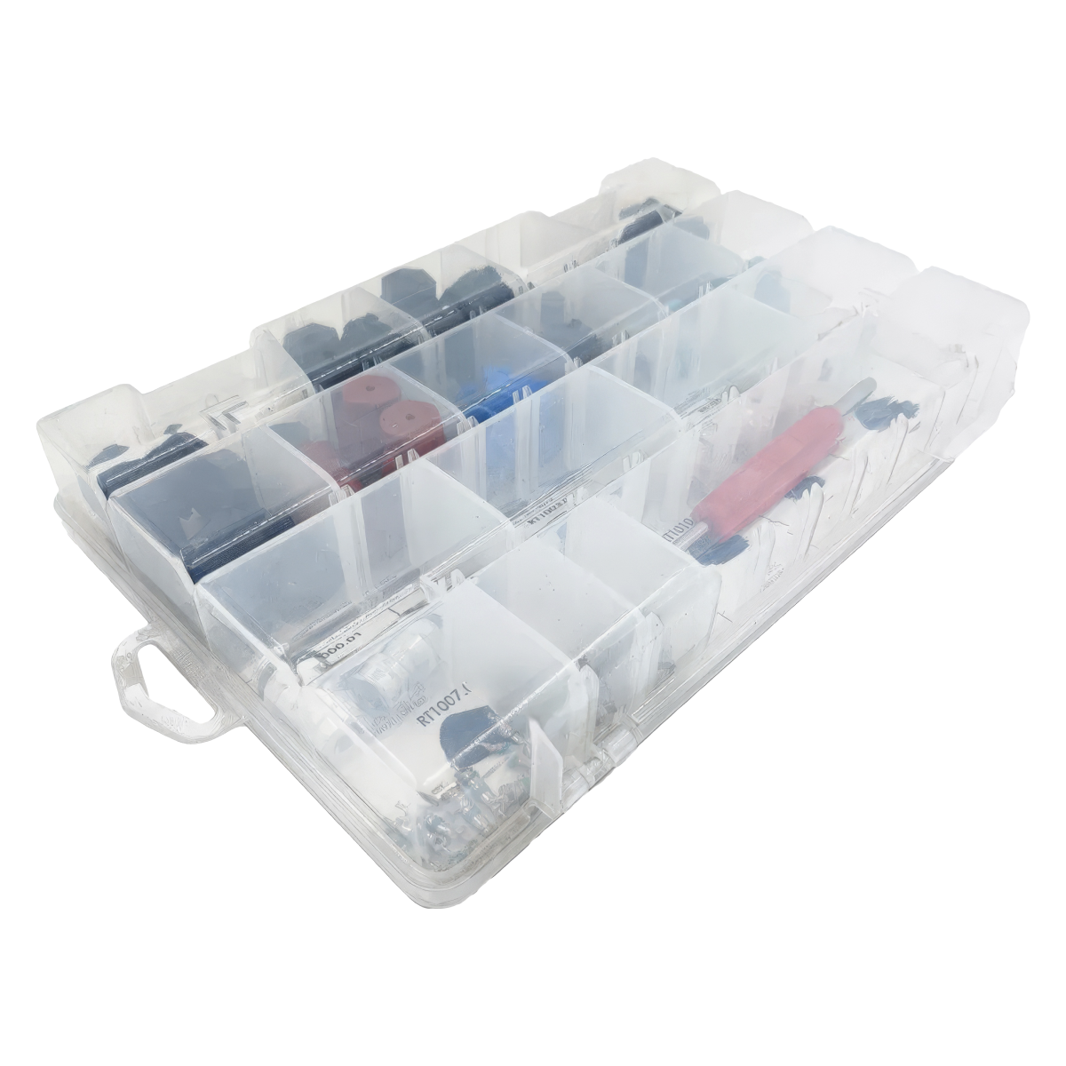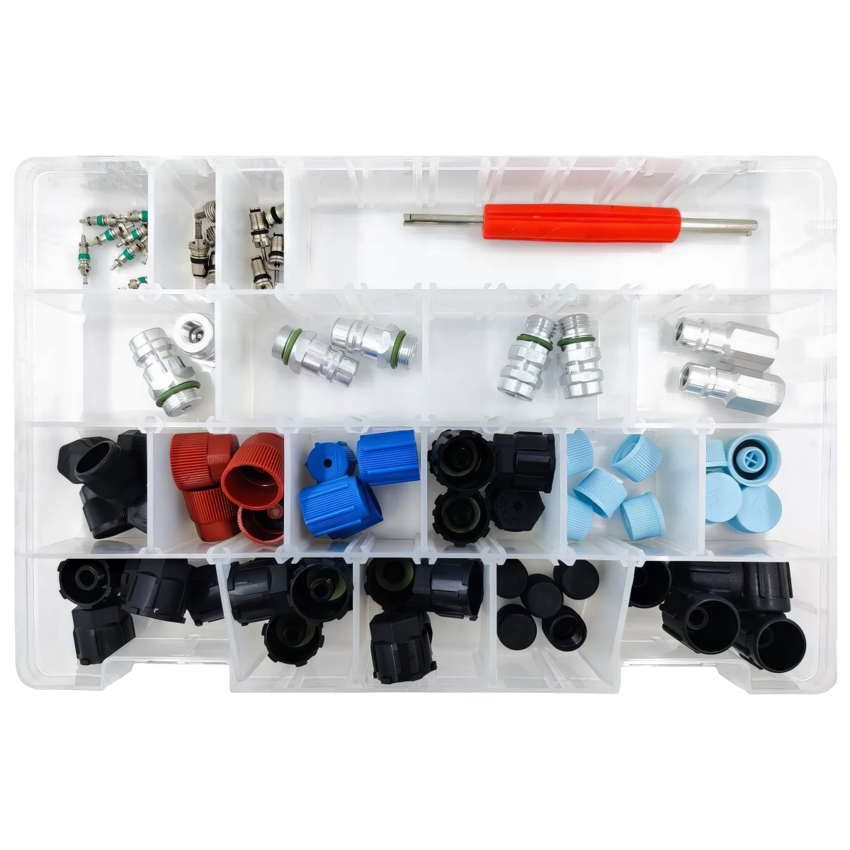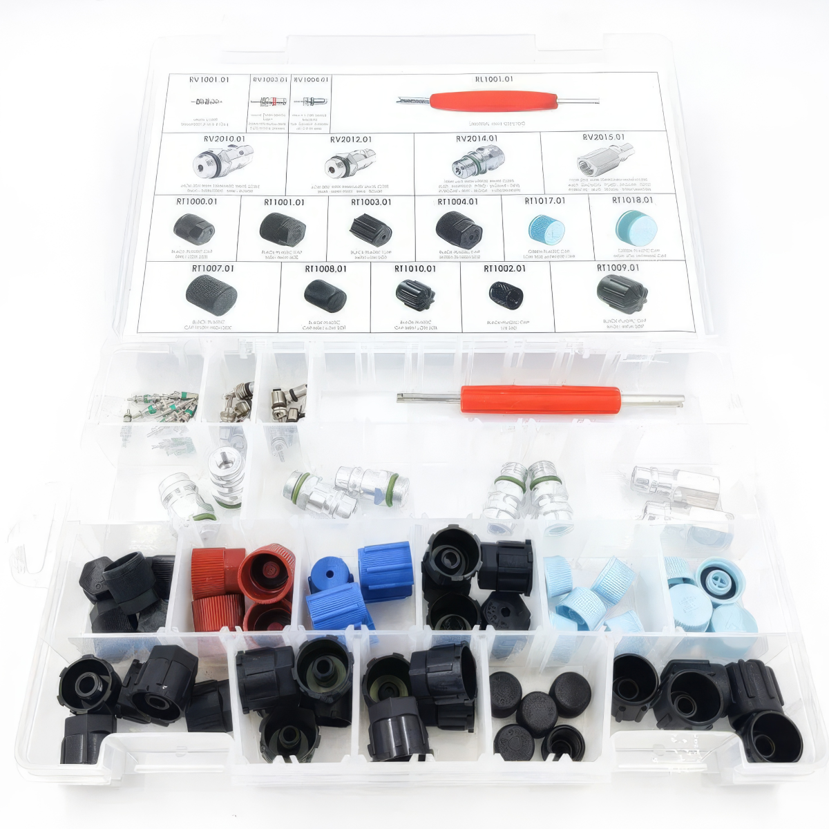 Набор запасных сервисных портов, золотников, колпачков для R134A от Errecom включает в себя: