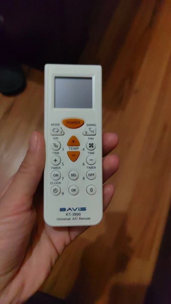 Универсальный пульт управления для кондиционеров BAVIS KT-3999 поддерживает 4000 кодов для управления моделями кондиционеров различных производителей. Подключение происходит в несколько кнопок и занимает меньше минуты. Подходит для 98% кондиционеров.