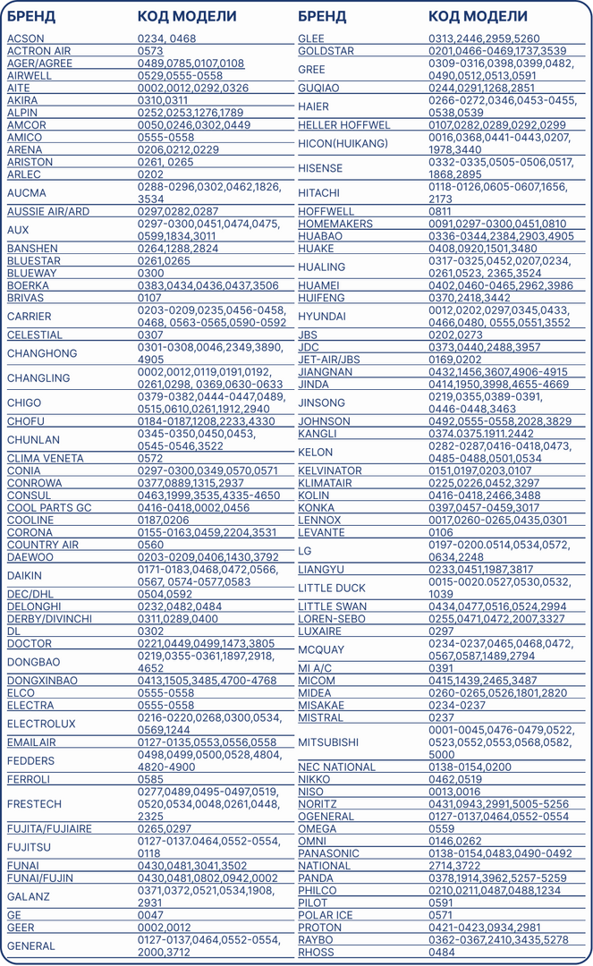 <virtues></virtues> <limitations></limitations> <comment>Отличный пульт, сзади написано когда практически для всех марок кондиционеров. Нам подошёл быстро.</comment>