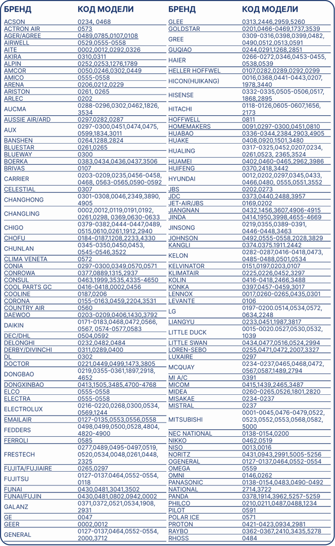 Универсальный пульт управления для кондиционеров BAVIS KT-B02 поддерживает 1000 кодов для управления моделями кондиционеров различных производителей. Обладает функцией автоподключения одной кнопкой к кондиционерам популярных брендов.