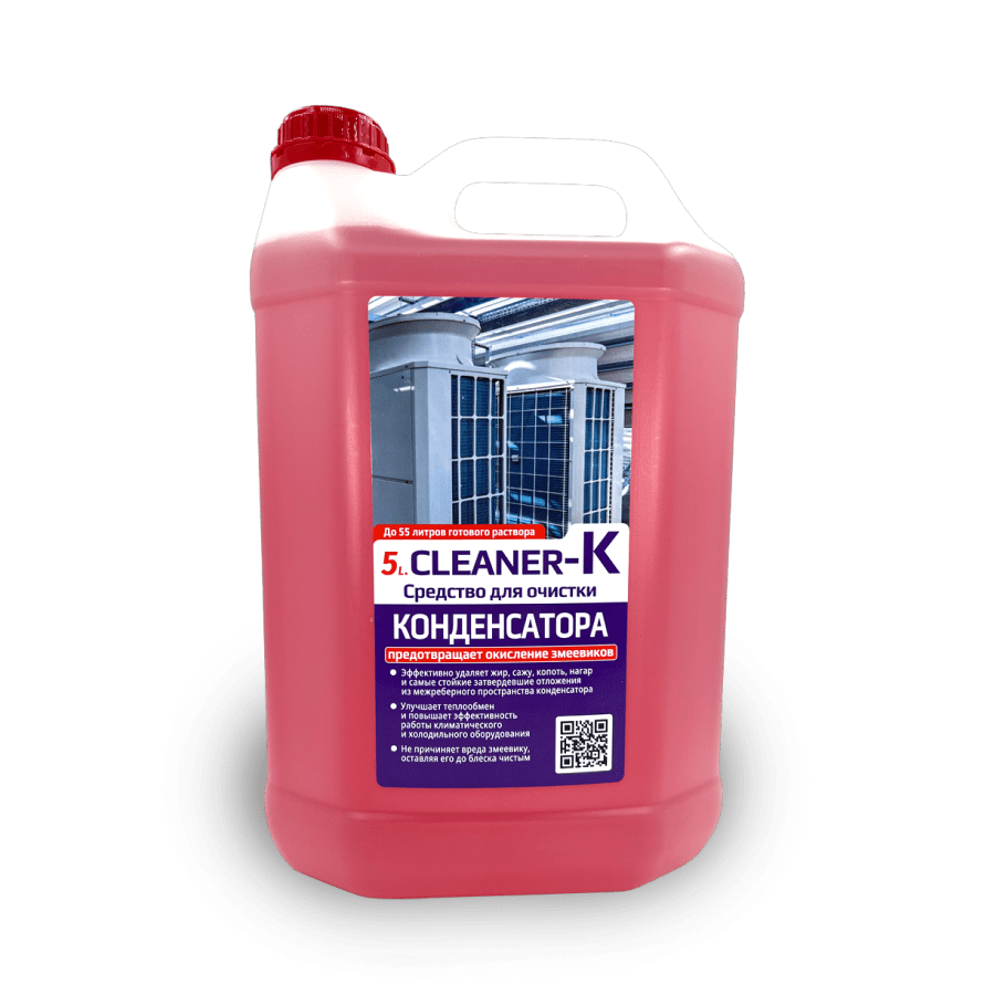 Средство чистящее 5L.CLEANER-K предназначено для удаления жира, масла, сажи, грязи, пыли, копоти, нагара и стойких затвердевших отложений с внешних поверхностей любых радиаторов, теплообменников климатического и холодильного оборудования. Средство предотвращает окисление змеевиков, а также улучшает теплообмен и повышает эффективность работы климатического и холодильного оборудования.