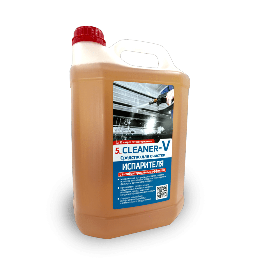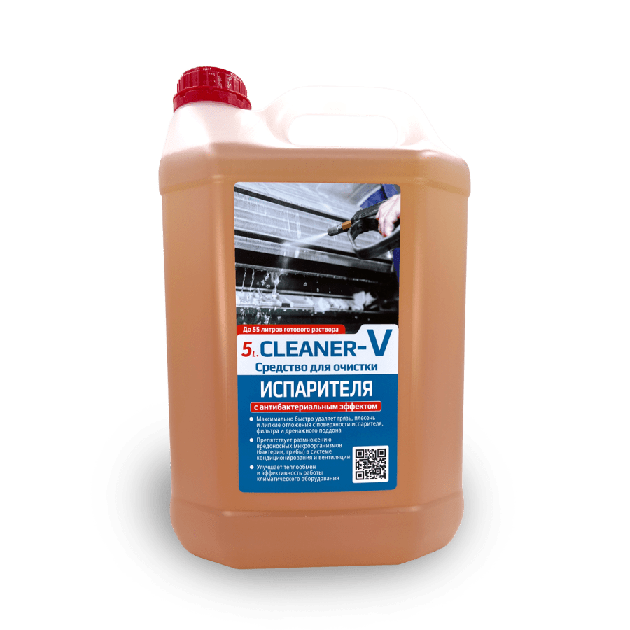 Средство чистящее с антибактериальным эффектом 5L.CLEANER-V предназначено для удаления комбинированных стойких жировых, белковых, масляных и липких загрязнений, нагара, копоти, плесени, биозагрязнений с любых твердых поверхностей, с поверхности испарителя, фильтра и дренажного поддона в системах кондиционирования воздуха, в холодильных установках. Средство препятствует размножению вредоносных микроорганизмов (бактерии, грибы), улучшает теплообмен и эффективность работы климатического оборудования.
