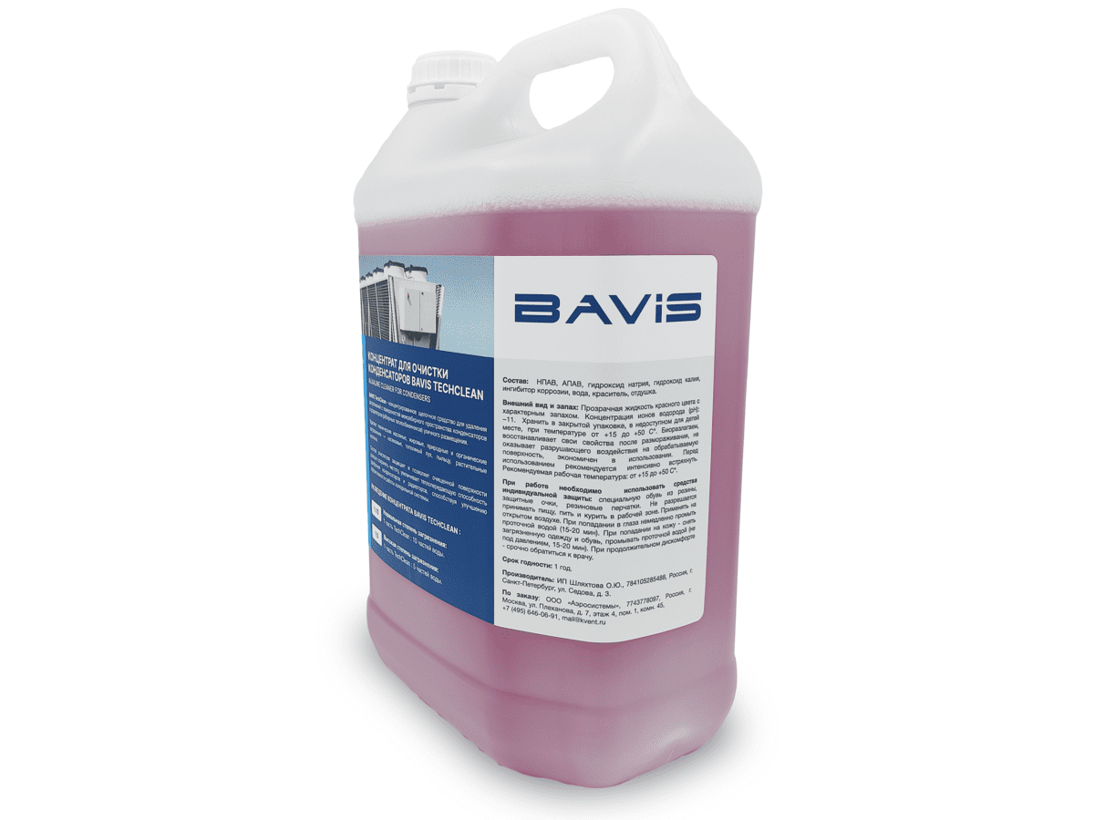Концентрат для очистки конденсаторов BAVIS TechClean - щелочное средство для удаления загрязнений с поверхностей межреберного пространства радиаторов и конденсаторов, которые размещаются на улицах.