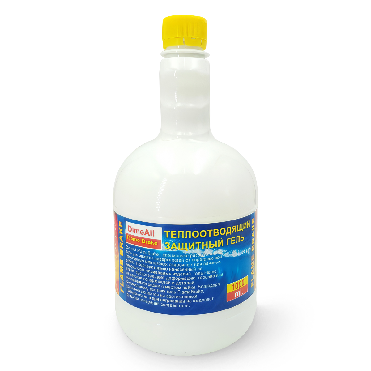 DimeAll FlameBrake cпециально разработанный гель для защиты поверхностей от перегрева, используется при проведении монтажных сварочных или паячных работ. Предварительно нанесенный на поверхность спаиваемых изделий, теплоотводящий гель FlameBrake, предотвращает деформацию, горение или плавление поверхностей и деталей, находящихся рядом с местом пайки, обеспечивая надёжный теплоотвод. Благодаря специальному составу, теплоотводящий гель FlameBrake, уверенно держится на вертикальных поверхностях, при нагревании не выделяет вредных испарений.