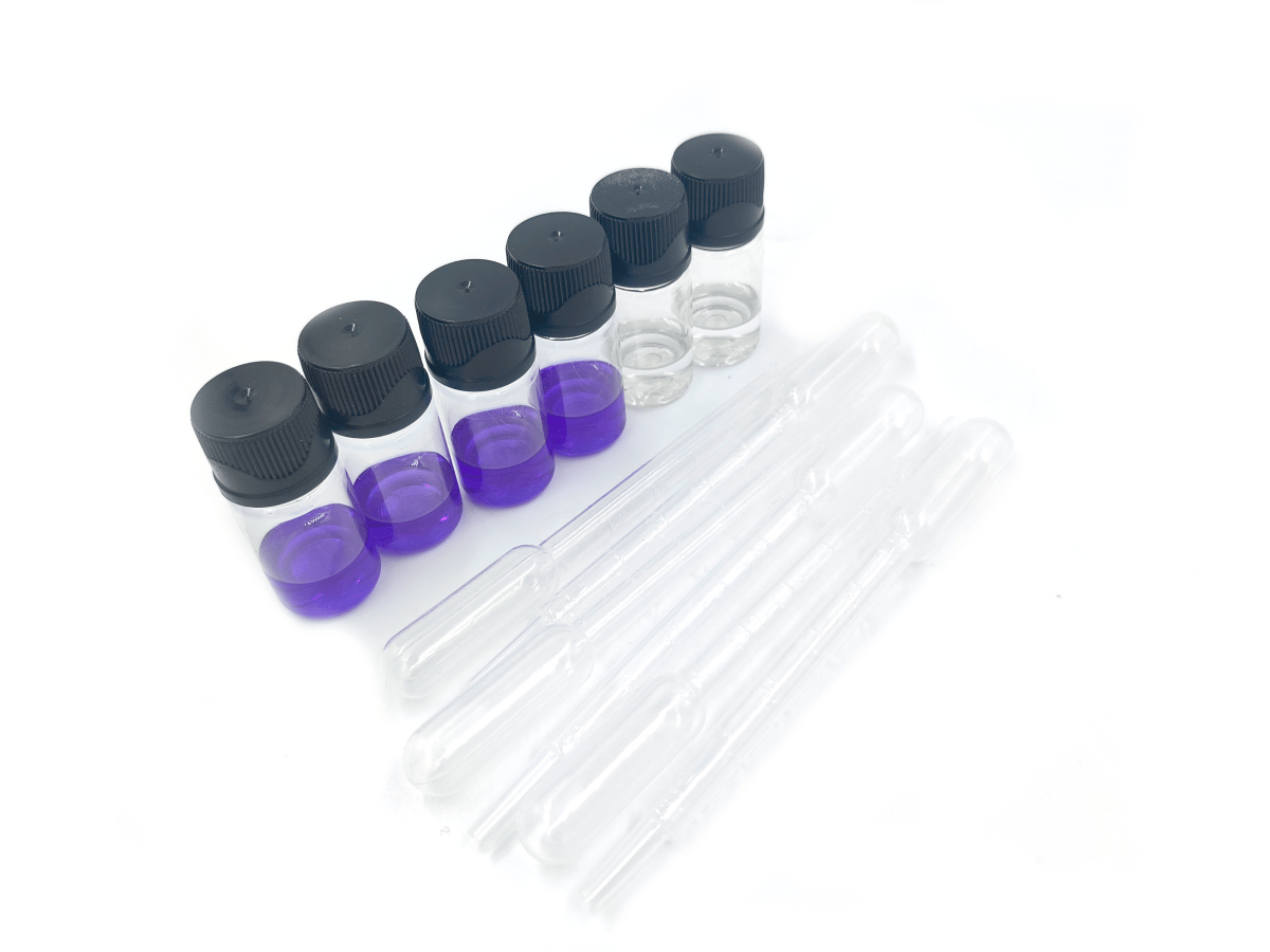 - 4 теста определения номинального уровня pH (цвет реагента - фиолетовый);