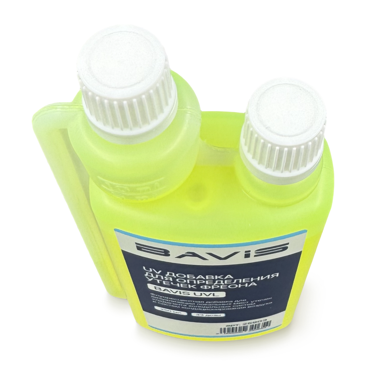 BAVIS UVL – профессиональная ультрафиолетовая добавка для четкого выявления утечек хладагента в ультрафиолетовом свете. Применима с хладагентами CFC, HCFC и HFC. Объем: 250 мл (33 дозы по 7.5 мм).