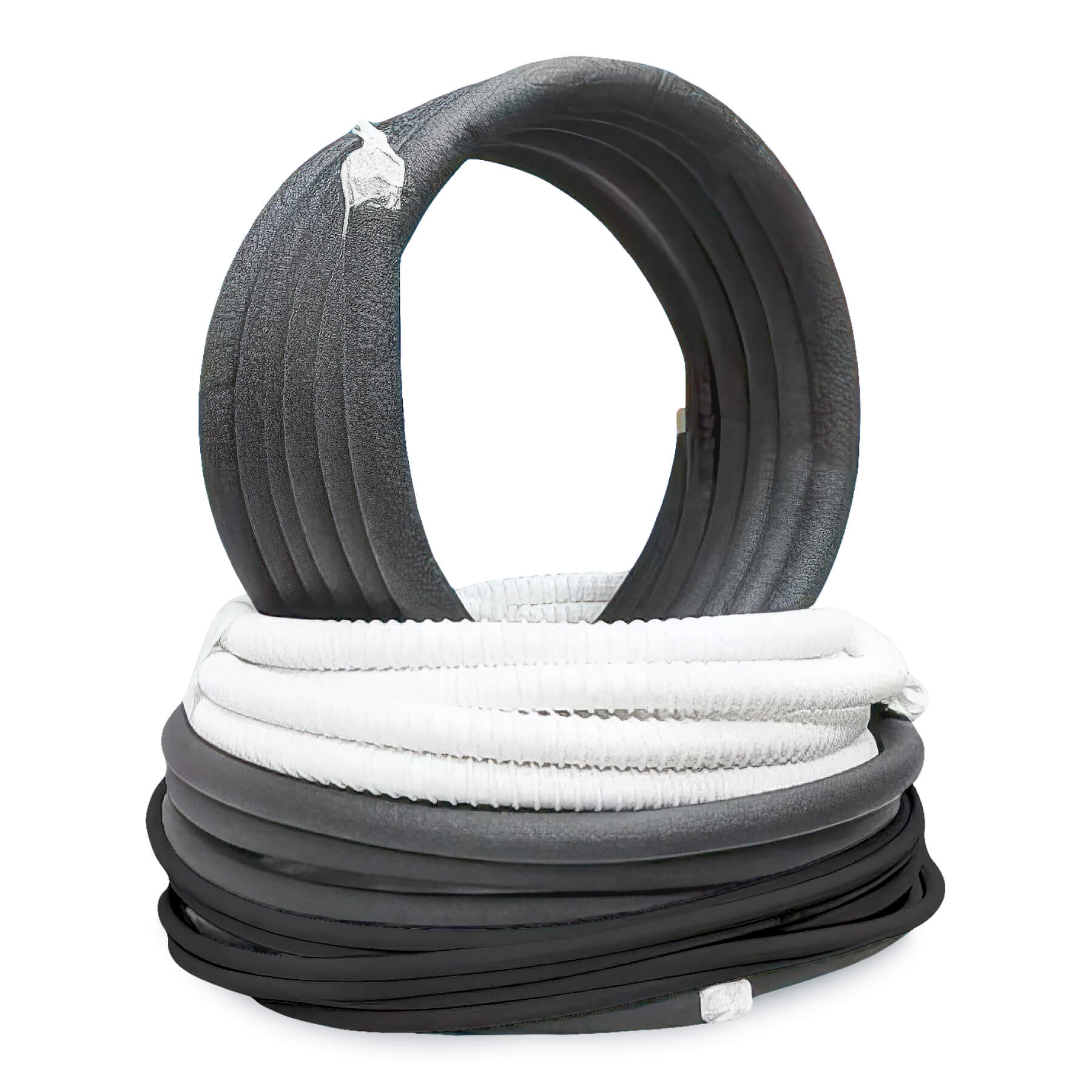 Готовая межблочная трасса для самостоятельного монтажа кондиционера/сплит-системы мощностью от 5 кВт до 8 кВт. Состоит из готовых медных трубок 1/4" и 1/2" в теплоизоляции с развальцованными концами для герметичного соединения блоков кондиционера, дренажного шланга 5/8" для отвода конденсата от внутреннего блока, межблочного кабеля ВВГнг 4х1.5.