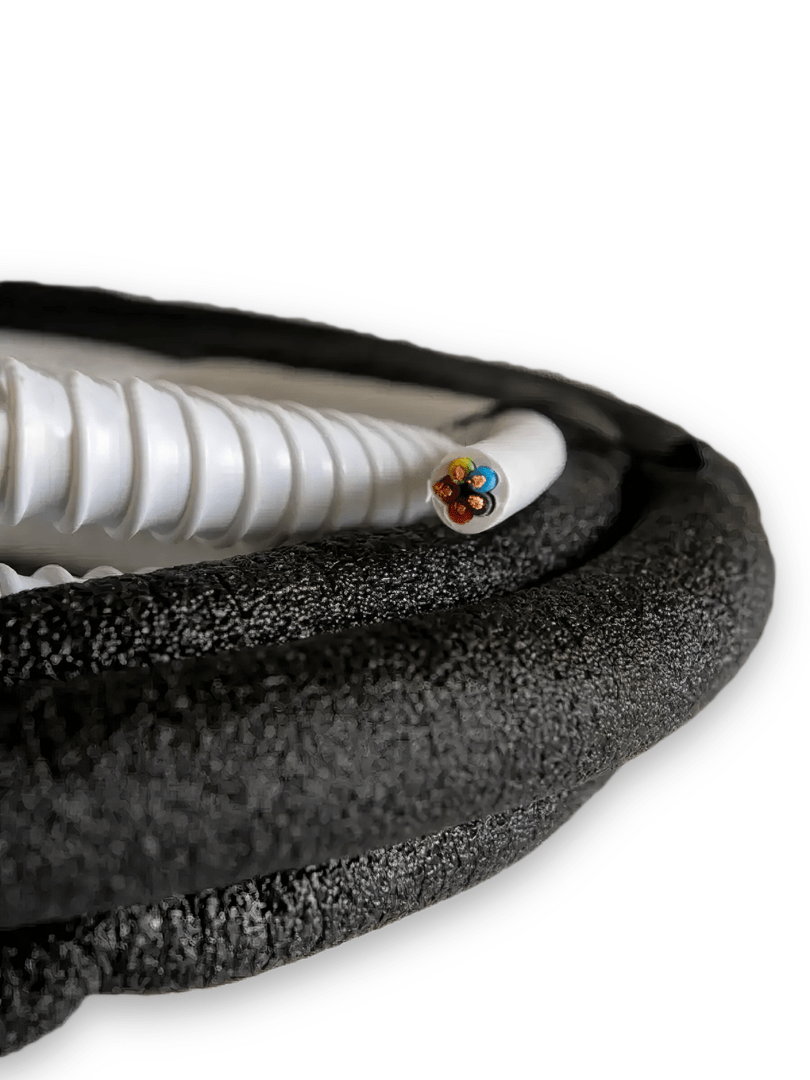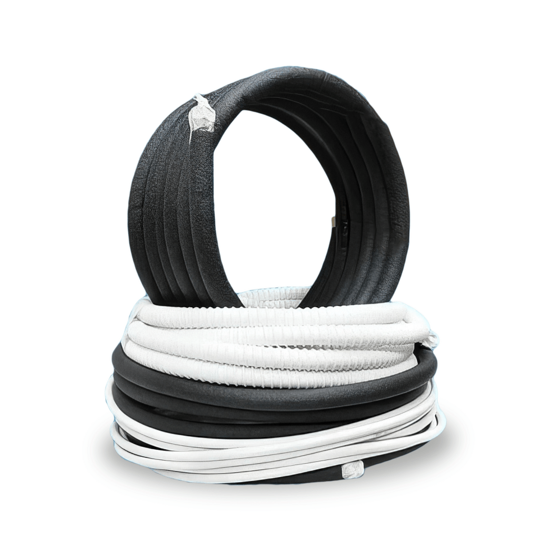 Готовая межблочная трасса для самостоятельного монтажа кондиционера/сплит-системы мощностью от 5 кВт до 8 кВт. Состоит из готовых медных трубок 1/4" и 1/2" в теплоизоляции с развальцованными концами для герметичного соединения блоков кондиционера, дренажного шланга 5/8" для отвода конденсата от внутреннего блока, межблочного кабеля ПВС 5х1.5.
