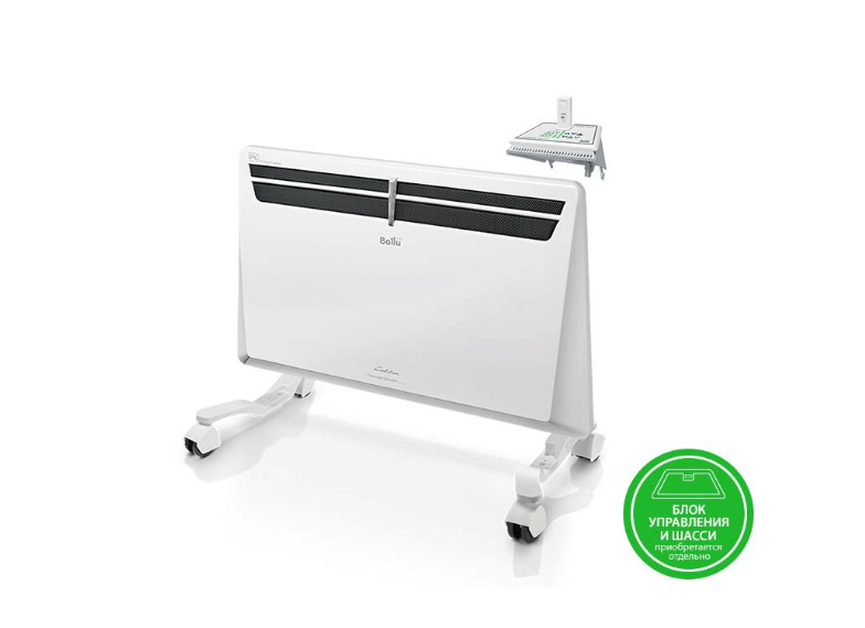 Для работы конвектора необходимо добавить в комплект один из трех блоков управления (обязательно) и шасси (не обязательно). Эффективен для помещений, площадью до 20 м².