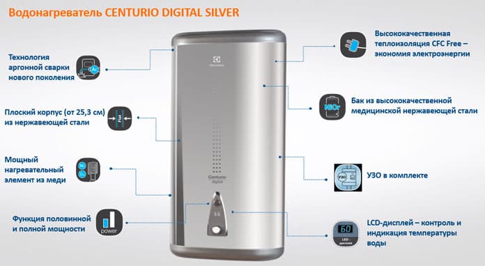 Electrolux серии EWH Centurio Digital Silver – электрический накопительный водонагреватель с высокими антикоррозийными свойствами.