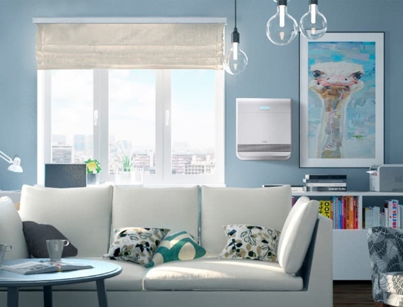 Бризер можно установить под подоконником, рядом с батареей или сбоку от окна. Наличие пульта управления позволяет вешать прибор под потолок.
