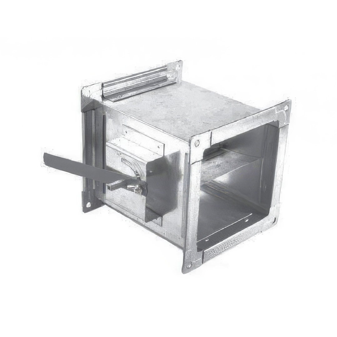Дроссель-клапан(Пр) - 1 - 150x150 - 200 (оц. ст. 0.50/100 - Шина R20х65О) для снижения и выравнивания аэродинамического сопротивления и регулирования объема воздушного потока в воздуховодах прямоугольного сечения.